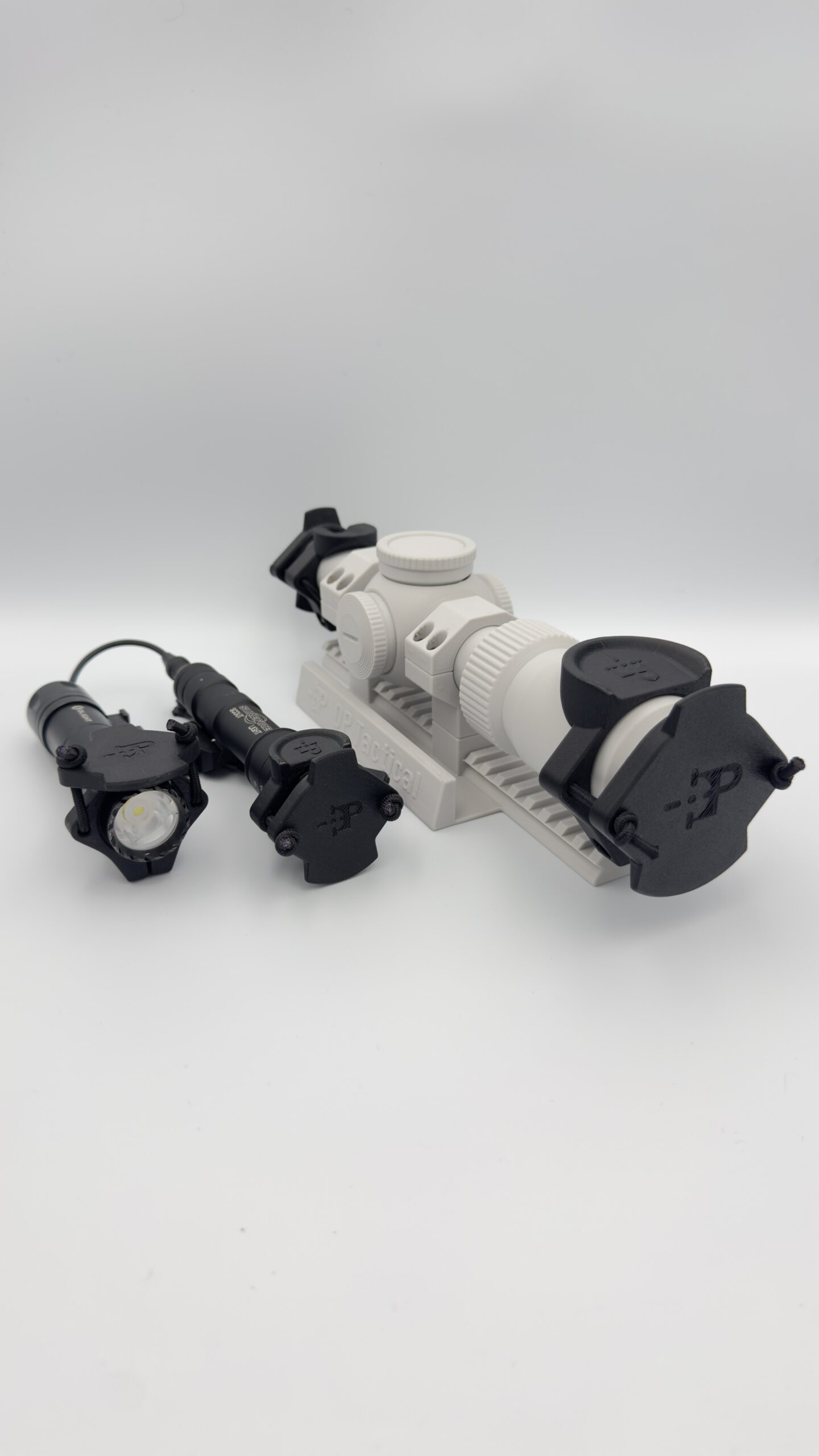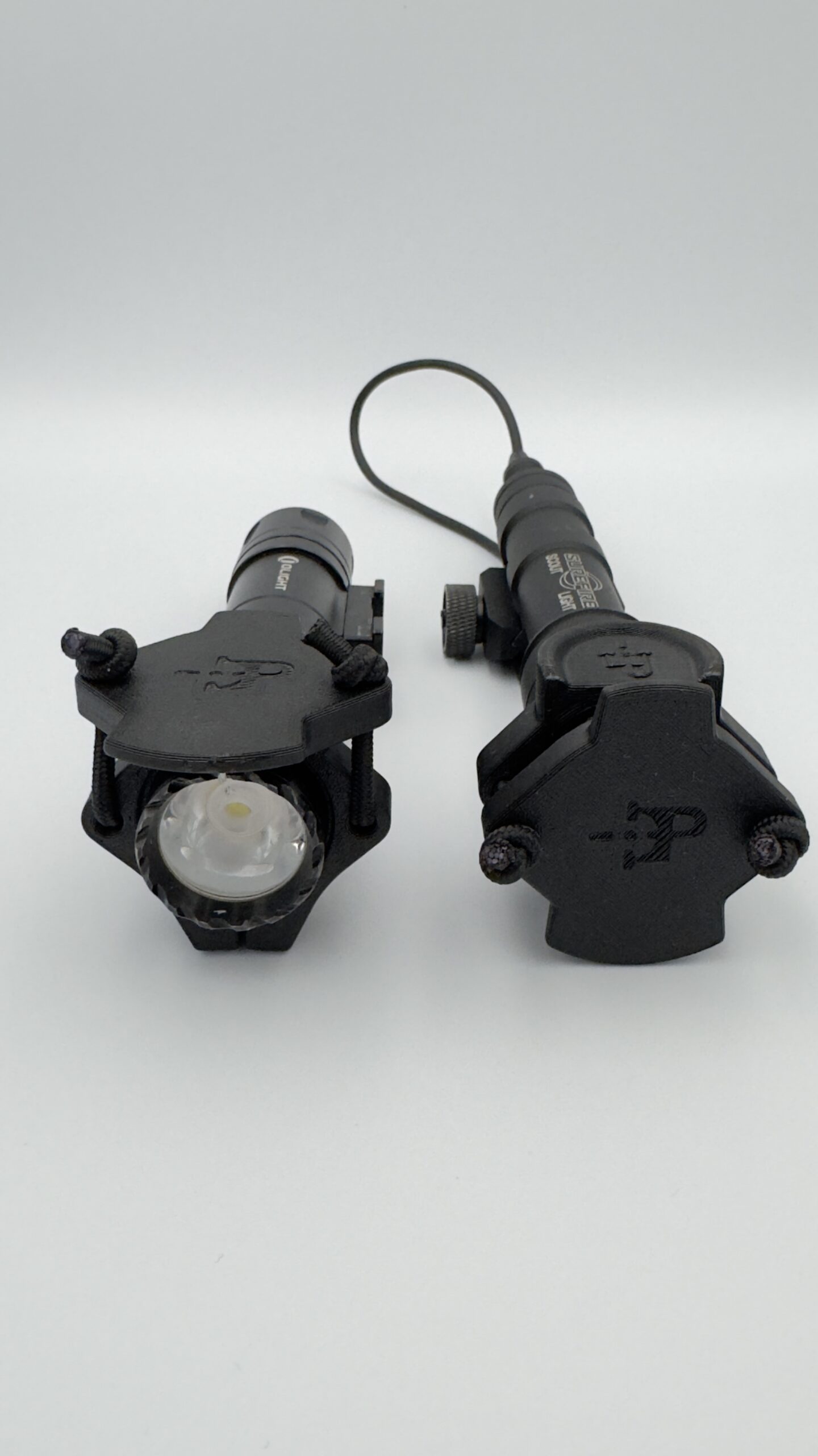 Indywidualnie dopasowane do modeli latarek montowanych na karabinku, zaprojektowane dla niezawodnej ochrony zarówno soczewki latarki jak i pozycji strzelca.